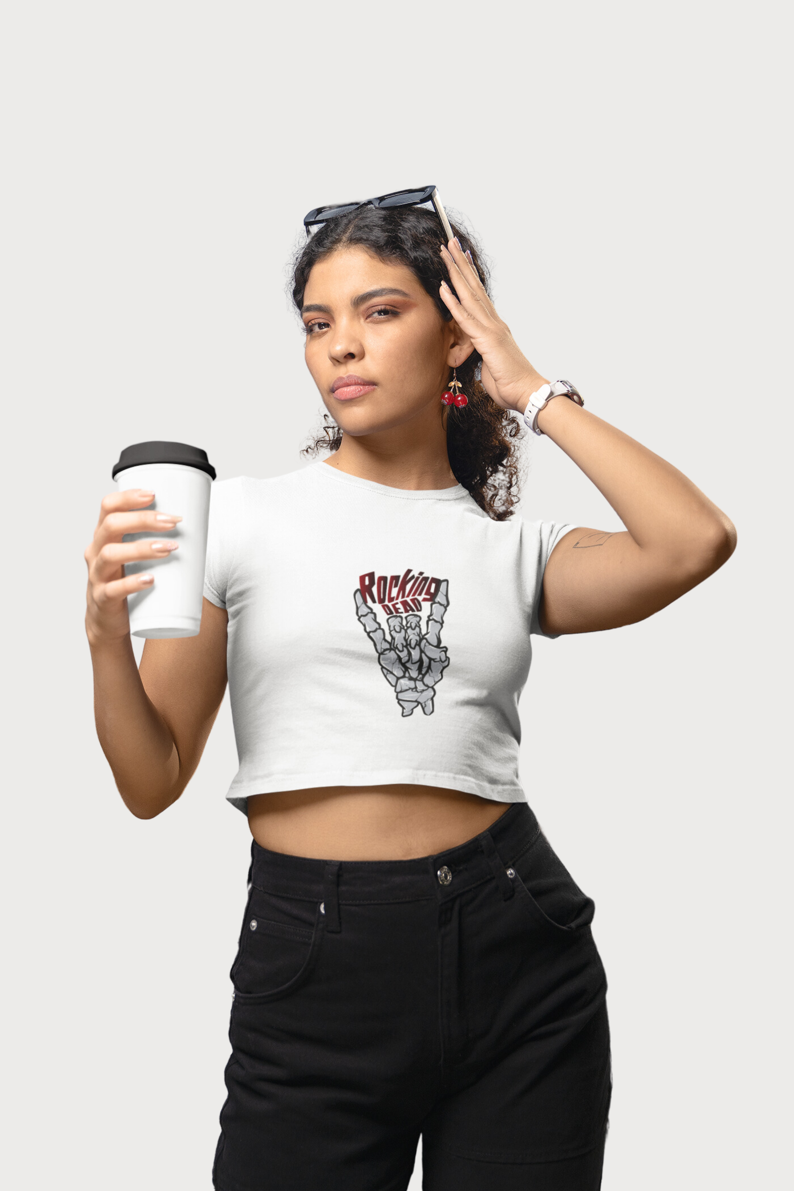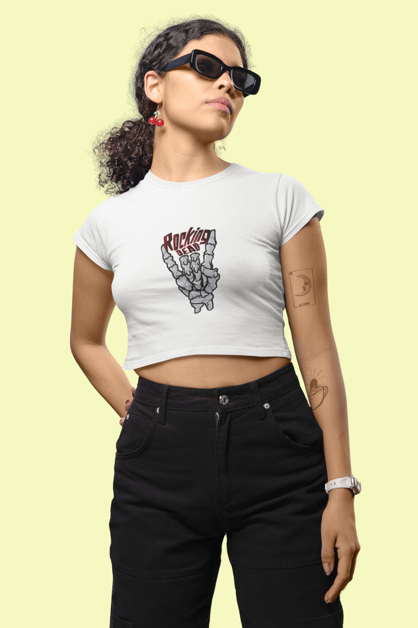 + Free ShippingRock your style with this edgy T-shirt featuring a striking skeleton hand making the iconic ‘rock on’ gesture. Above the hand, the bold phrase ‘Rocking Dead’ adds a perfect blend of rebellious spirit and dark humor.Perfect for adding an edgy, rebellious vibe to your wardrobe while showcasing your love for the rock lifestyle. Add a touch of rock ‘n’ roll rebellion to your wardrobe with this 100% cotton Crop Top.